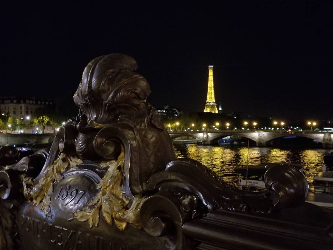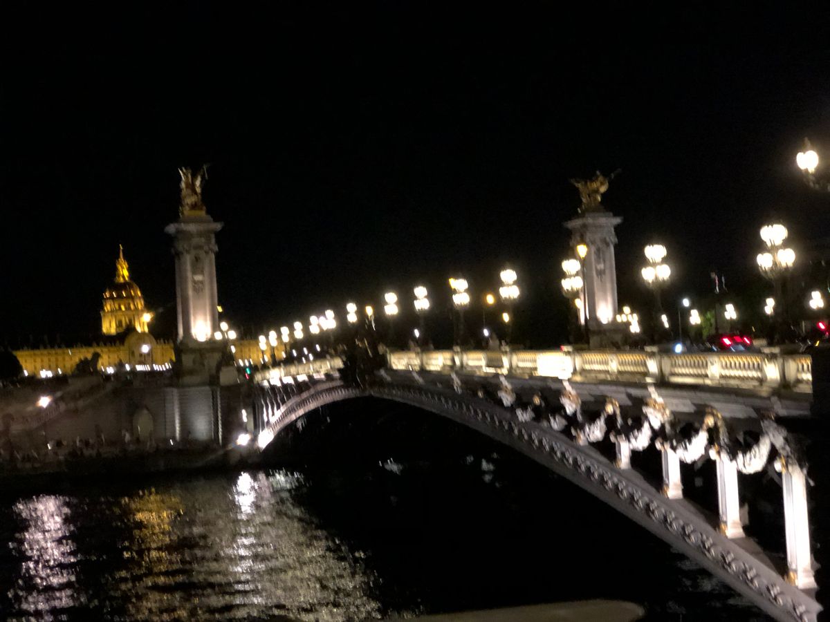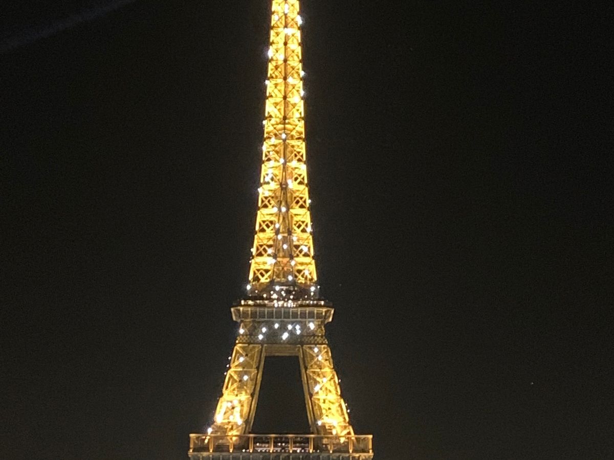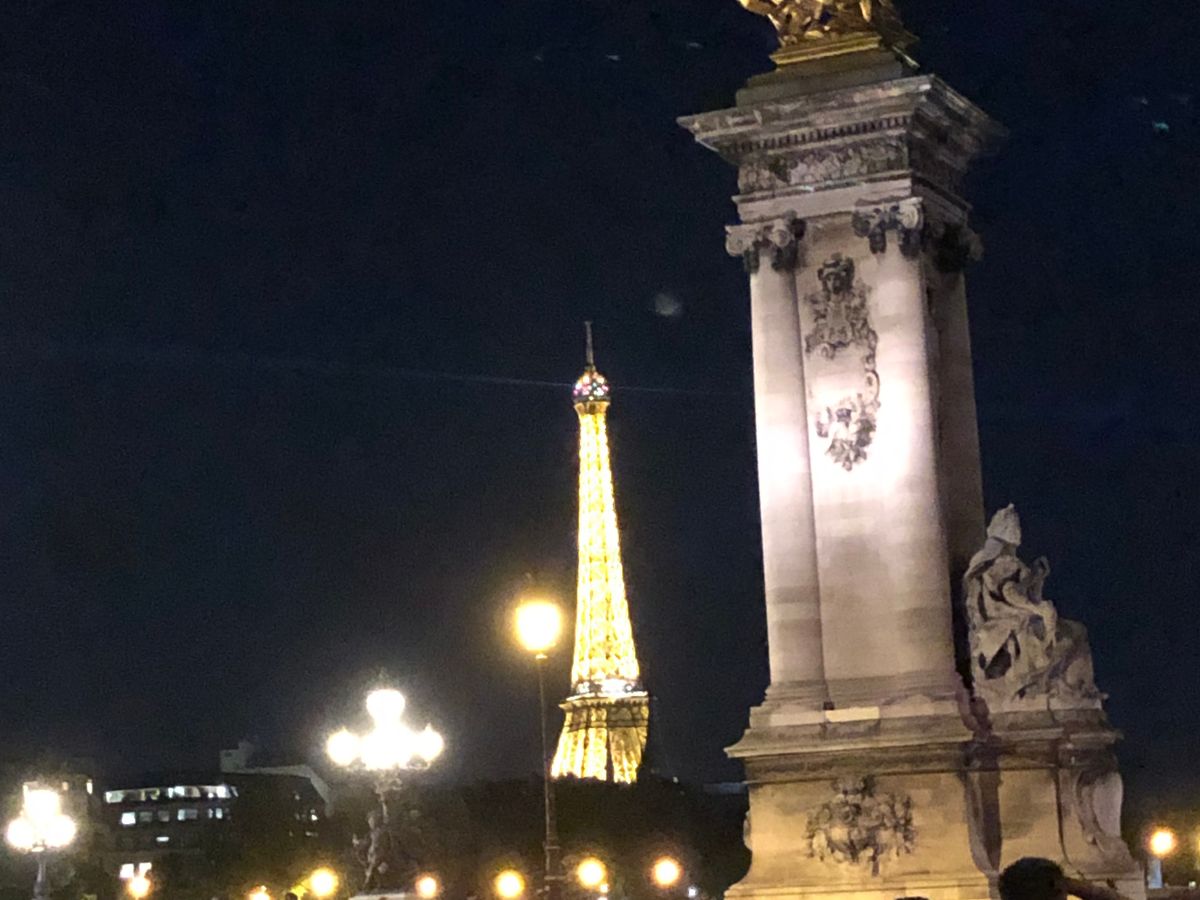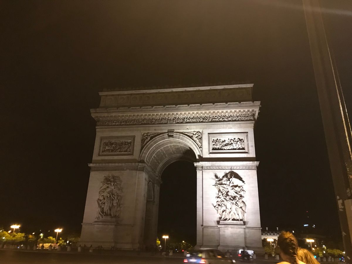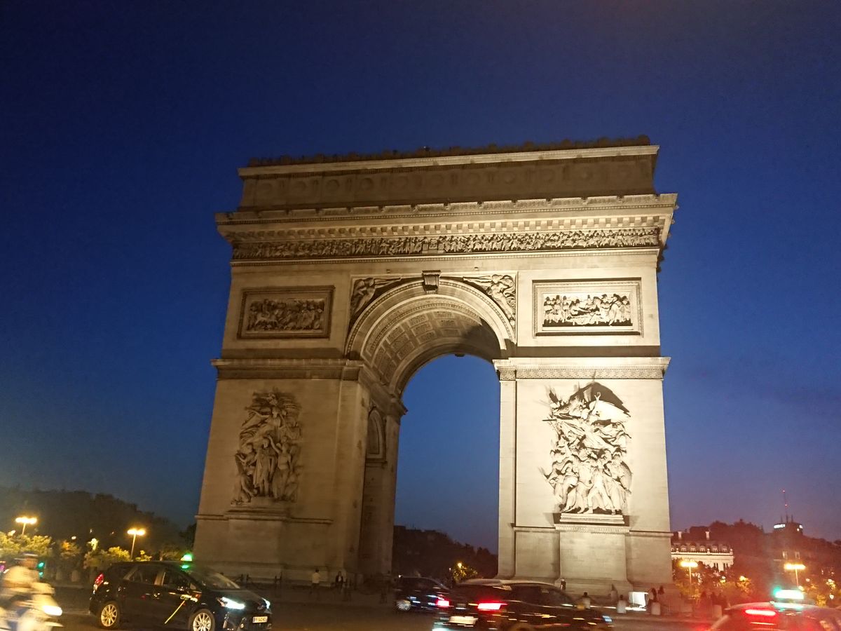 初めてのパリ、夏で日没が遅いこともあり、街並みがもっとキラキラ綺麗なのかと思いましたが、車窓からよく見えず残念。曇った照明のどよーんとした凱旋門と、エッフェル塔のシャンパンフラッシュだけでした。