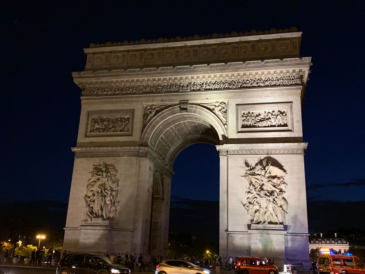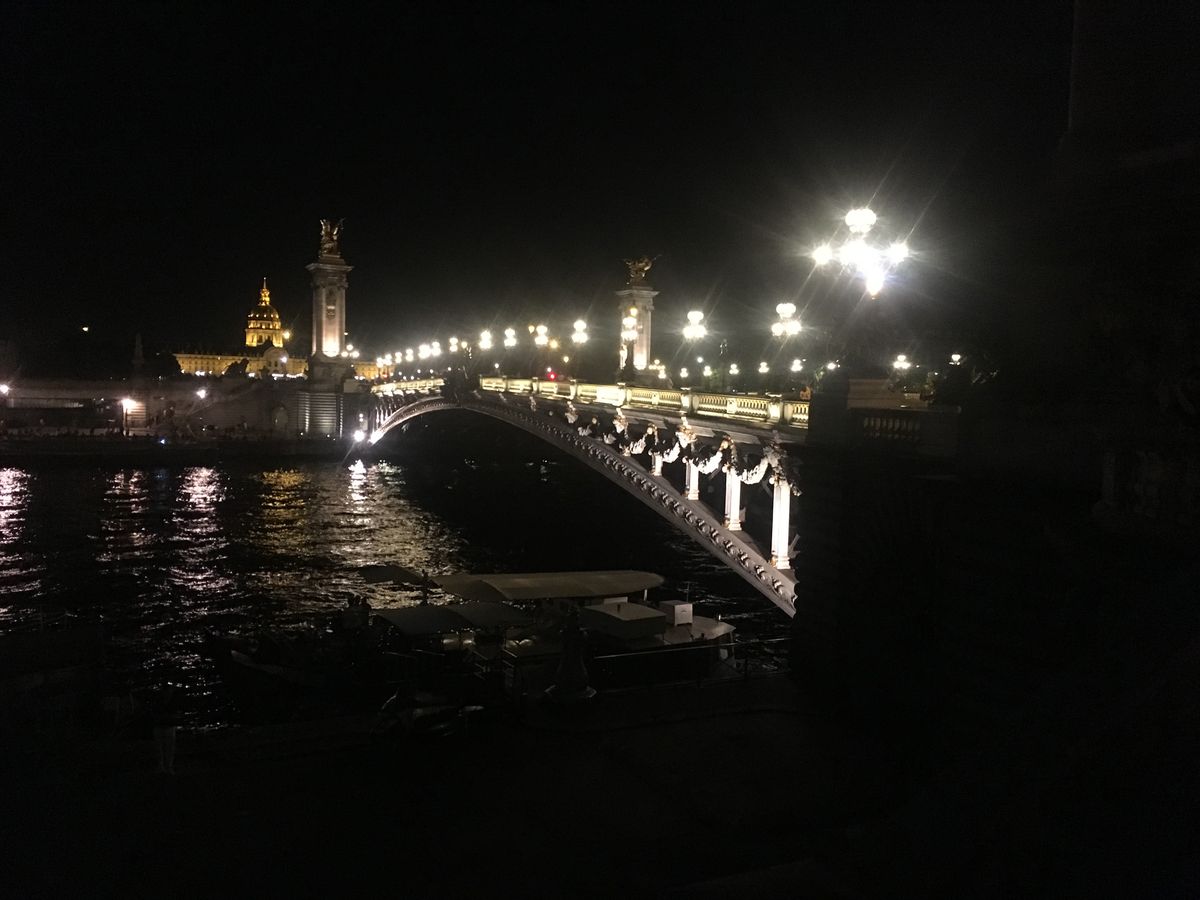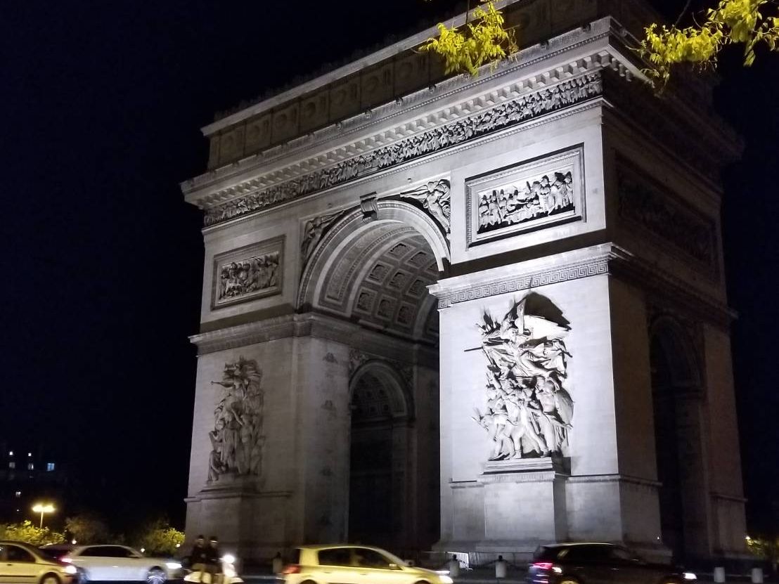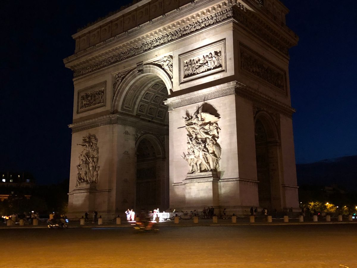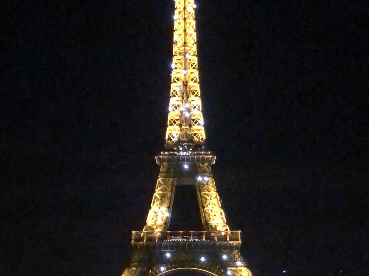 初めてのパリ、夏で日没が遅いこともあり、街並みがもっとキラキラ綺麗なのかと思いましたが、車窓からよく見えず残念。曇った照明のどよーんとした凱旋門と、エッフェル塔のシャンパンフラッシュだけでした。
