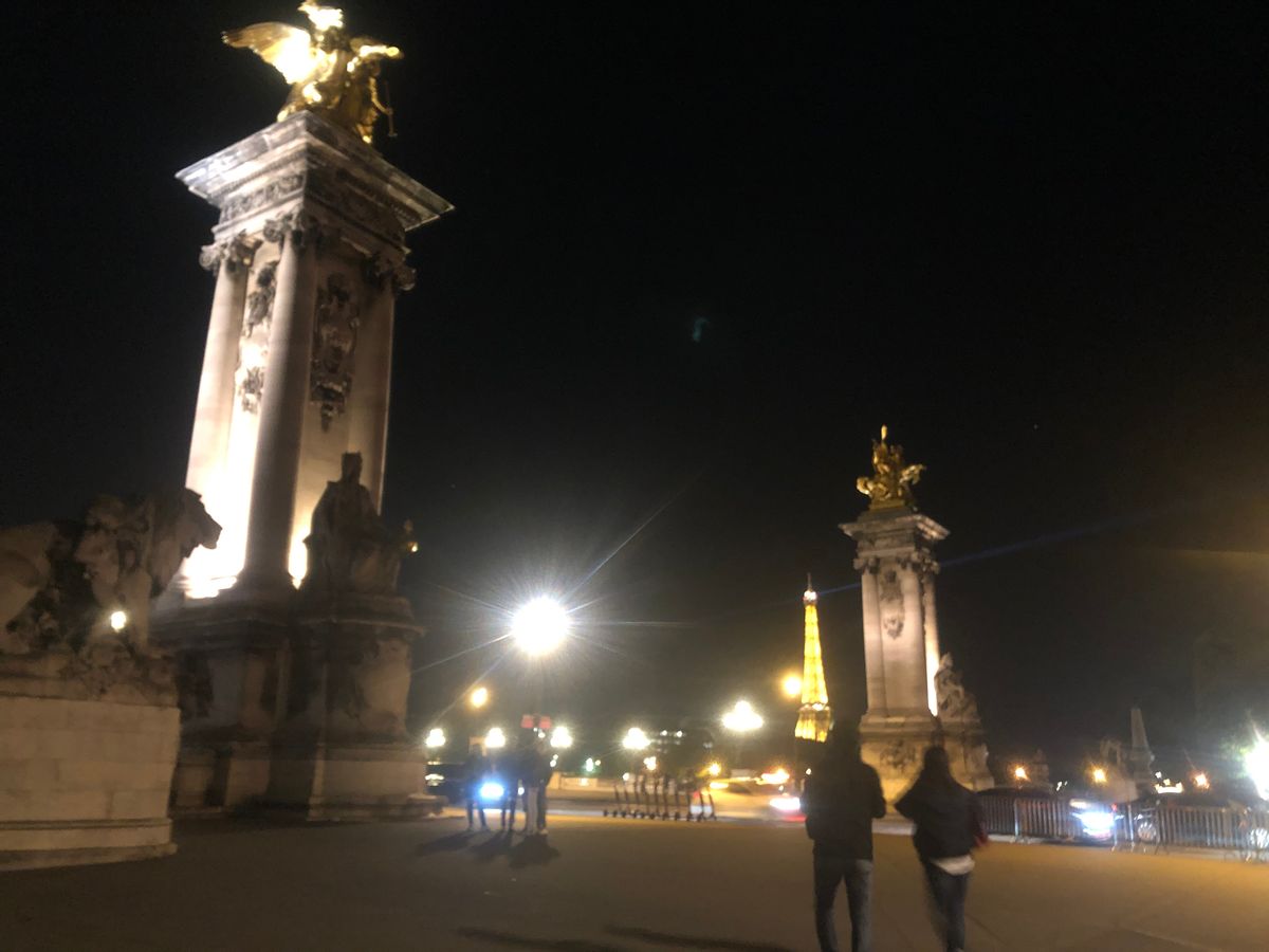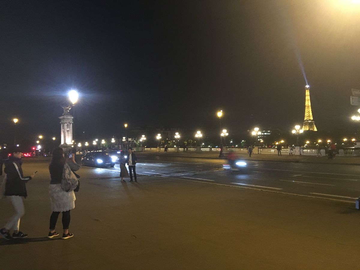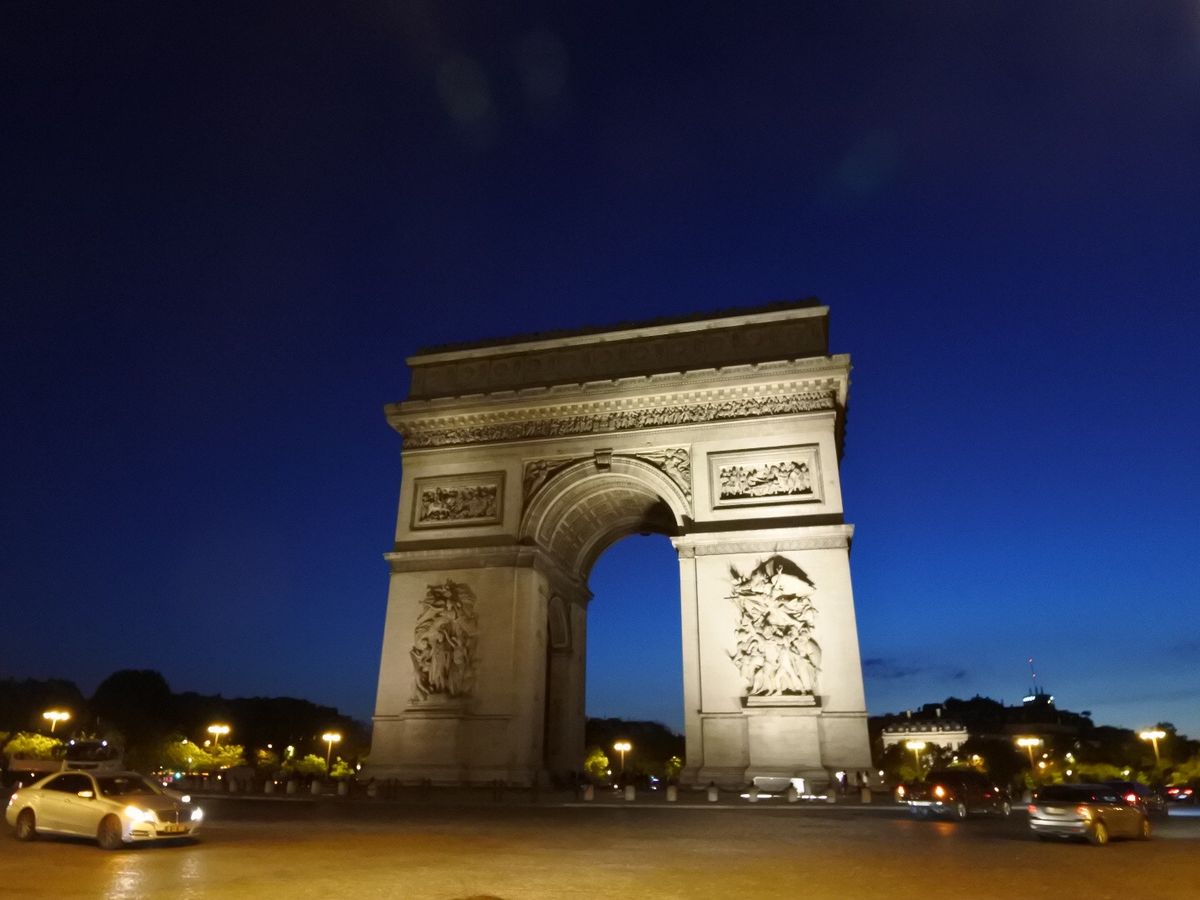 撮影のためバスを降りるために始めに行ったのはシャンゼリゼ大通りを通って凱旋門。ライトアップも昼間も近くで見たことはなかったのでその大きさに驚きました。1人参加でもガイドさんが写真を撮ってくださいました。次にエッフェル塔へ。シャンパンフラッシュを見るのは2回目でしたが、いつ見てもその美しさに感動します。撮影時間も十分にありました。最後はアレクサンドル3世橋。ここもライトアップされているのは初めて見ました。移動中もバスの電気は消され、パリの夜景を存分に楽しめました!帰りはホテルの場所によって別の車も含めホテルまで送っていただけました。女性1人でも安心できました!
