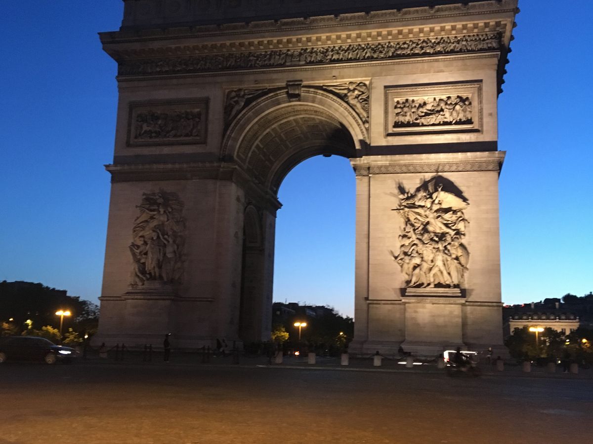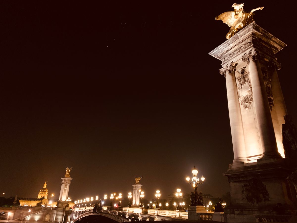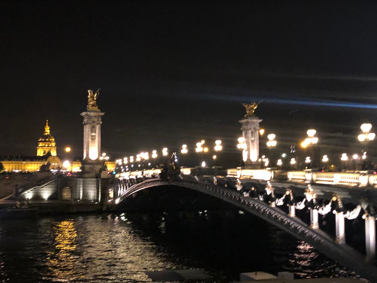 撮影のためバスを降りるために始めに行ったのはシャンゼリゼ大通りを通って凱旋門。ライトアップも昼間も近くで見たことはなかったのでその大きさに驚きました。1人参加でもガイドさんが写真を撮ってくださいました。次にエッフェル塔へ。シャンパンフラッシュを見るのは2回目でしたが、いつ見てもその美しさに感動します。撮影時間も十分にありました。最後はアレクサンドル3世橋。ここもライトアップされているのは初めて見ました。移動中もバスの電気は消され、パリの夜景を存分に楽しめました!帰りはホテルの場所によって別の車も含めホテルまで送っていただけました。女性1人でも安心できました!