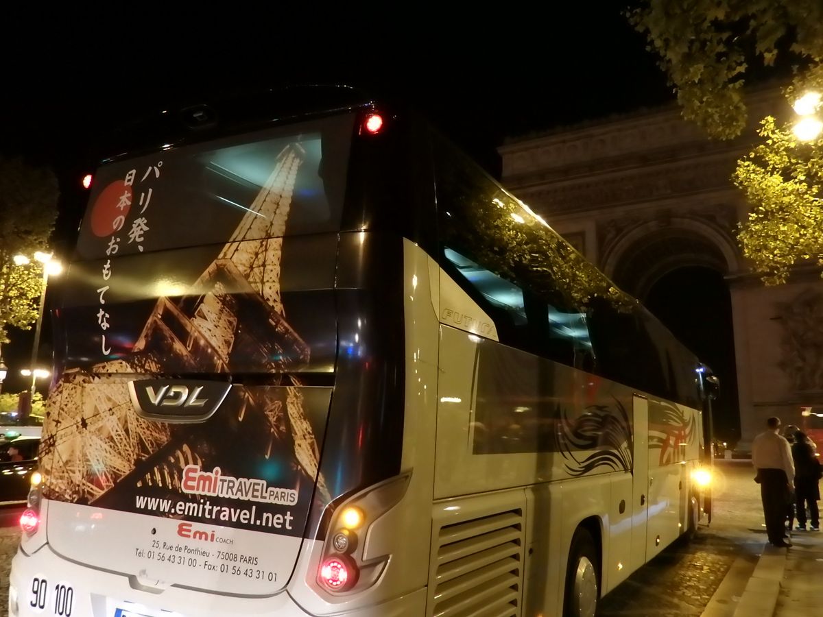 とても大きく立派なバスでリラックスして回れました。パリに到着した初日の夜に参加しました。ガイドさんの街並みの紹介やおすすめのスポット(お店など)などの話が参考になりました。この日は理由はわかりませんが、凱旋門とノートルダム大聖堂でライトアップが行われていないという事態になっていました。何かライトアップを自粛せねばならない出来事でもあったのでしょうか。単なる設備点検や節電のためだったかもしれませんが。その点が少し残念でしたが、エッフェル塔は美しいその姿をしっかり見れたし充分楽しめました。深夜11時30分頃に解散なので、最後ホテルまで送っててくださるサービスは重要でした。東京など日本の一般的な都市よりも街の明かりは少なく暗いですし、こんな深夜に初めての街で一人で帰るのは心配ですからね。