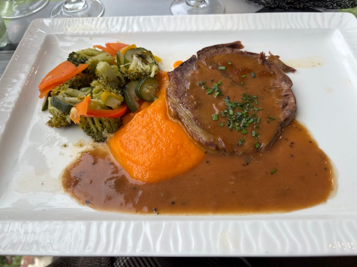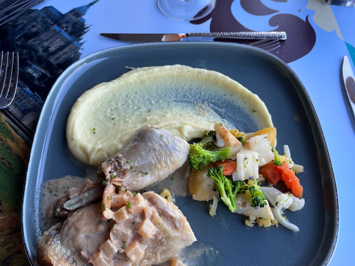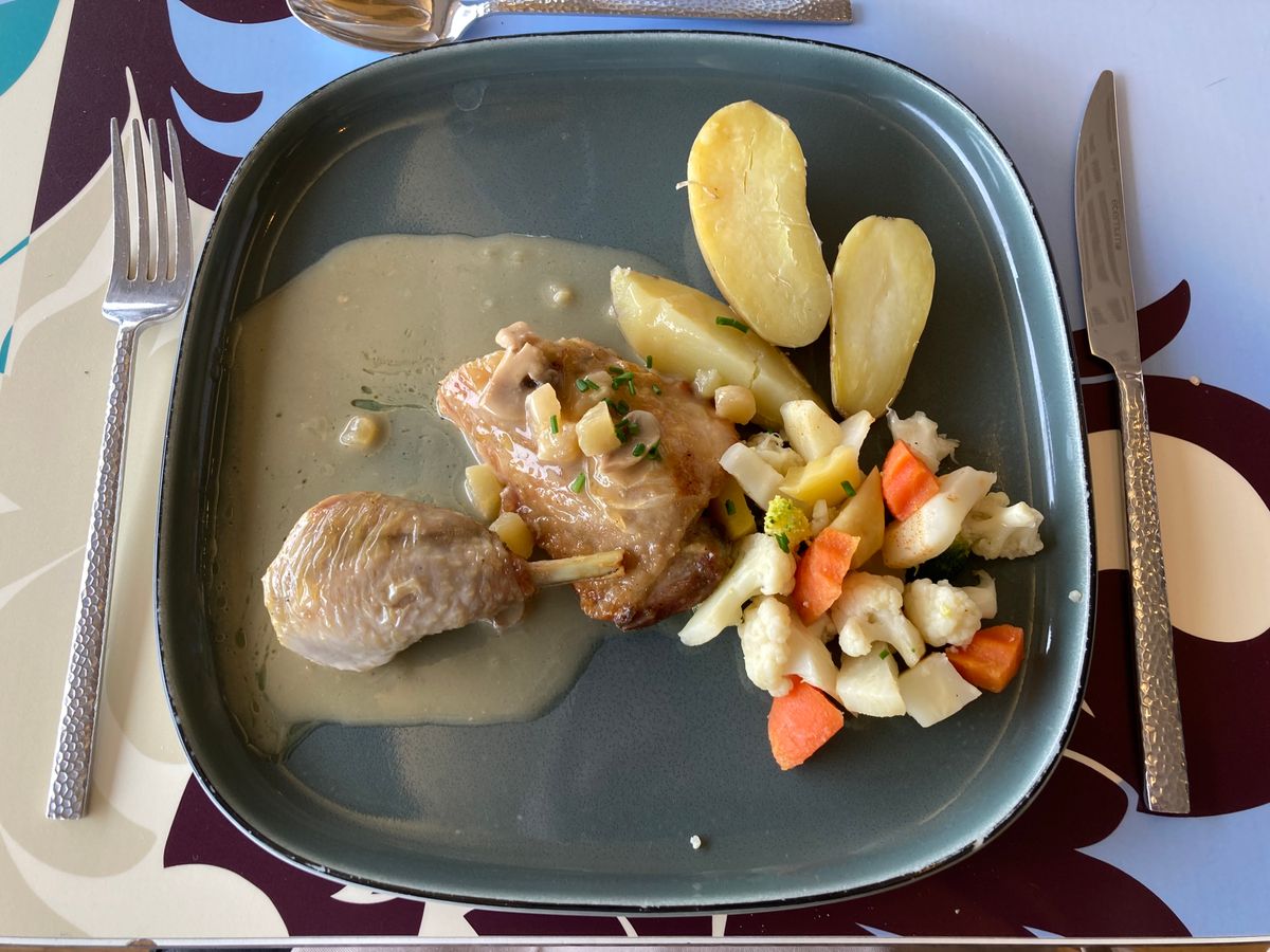 オプションでつけた夕食は、夕焼けに照らされるモンサンミッシェルを眺めながらのお食事で、本当に気持ちよかったです。オムレツはもちろん、その後に出てくる温野菜やチキン、りんごタルトまでとても満足度の高いコースでした。
