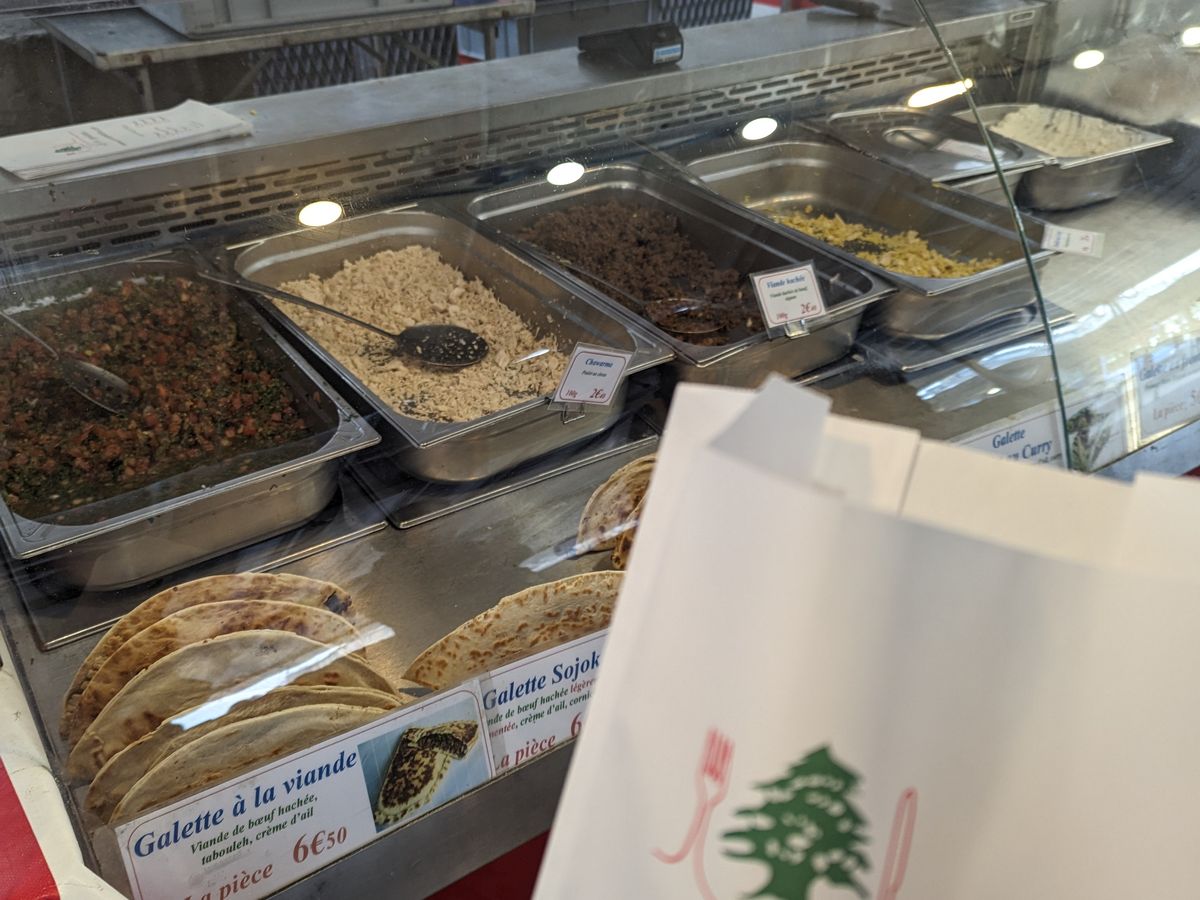 ベルサイユから徒歩で15分ぐらいにあるマルシェでは、お昼どきなのでパンやガレットが買えます、
