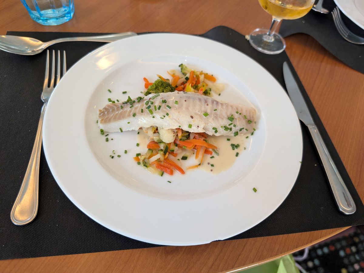 三コースのディナーは、特別に豪華ではありませんでしたが、セーヌ川を眺めながら食事をするという環境がそれ以上に素晴らしいものでした。料理はどれも美味しく、十分に満足できました。シャンパンやドリンクの追加オプションもあり、特にシャンパンはクルーズにぴったりで、ぜひ試してみることをお勧めします。水は有料だった点を考慮すると、オプションでドリンクを追加する価値は十分にあります。