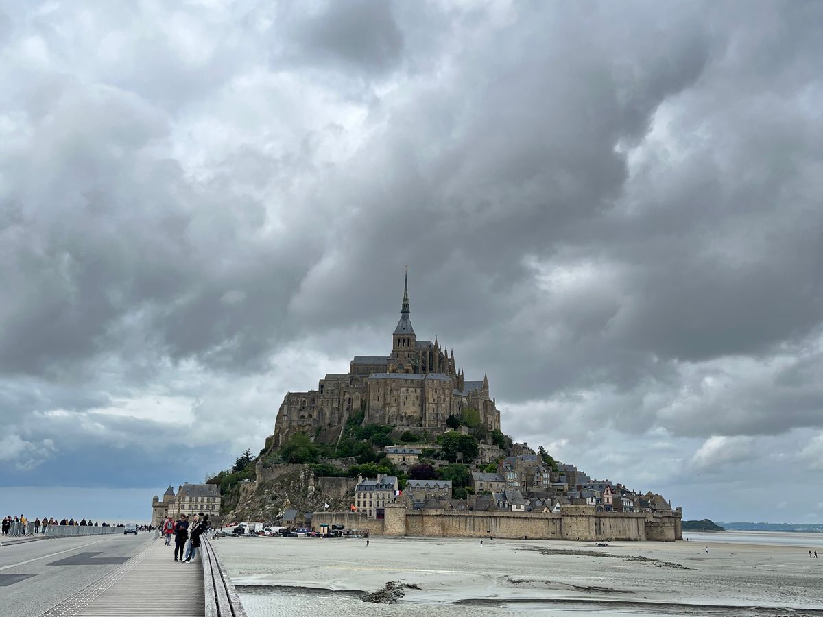 モンサンミッシェル島内では、修道院を見るだけでなく、お土産物を見たり、オムレツを食べたりなど十分に観光する時間がありました。しいて言うなら、バスの駐車場に戻る直前にゲリラ豪雨が降ってきてしまい、全身びしょぬれで帰宅することになったのが大変でしたが、運転手さんが暖房の温度を上げてくださったのでとても快適に帰宅できました。