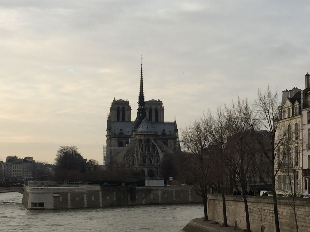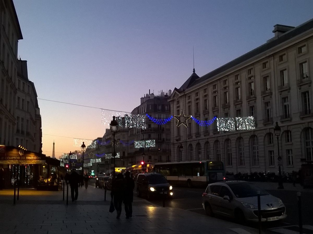今回は14:30からのツアーでしたが、暖冬のパリとは言えど、やはり寒かったです。特に、夕方近くになると。ツアーの最後のほうでは、暗くなってきましたので(写真)。