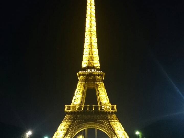 バスが、エッフェル塔と凱旋門の前で停車してくれるので、ゆっくり写真が撮れます。エッフェル塔にはちょうど23時に点灯するタイミングで行きました。