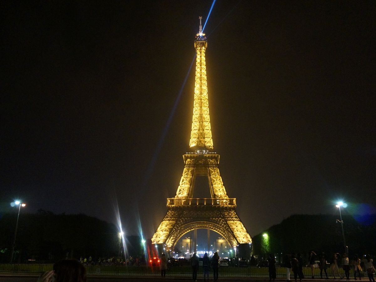 エッフェル塔は1時間に1回のシャンパンフラッシュに合わせてくれます。