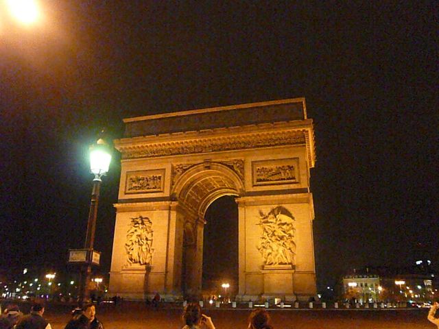 母と二人での参加で、HISのツアーでめぐって3日目のパリに到着した初日でした。夕方15時半~17時半くらいの観光で少し明るいうちにバスで周っていたときとは違い、雰囲気たっぷりで所々建物のライトアップはかなり素敵でした。