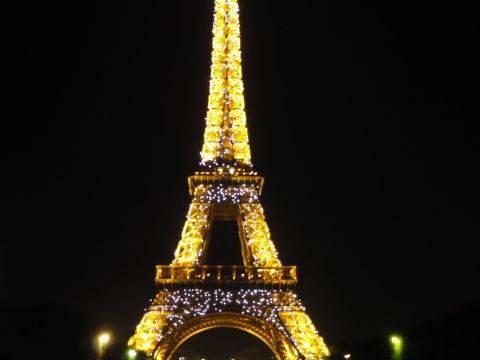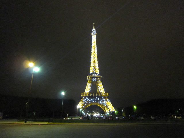 キラキラ輝くエッフェル塔は昼間に見るものとはまた別物。