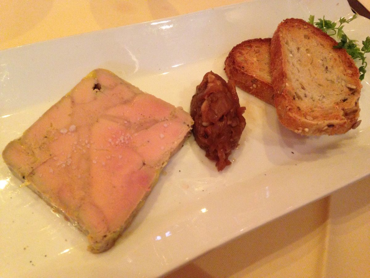 思ったよりこじんまりしたレストラン。分かっていても突然ウエイターさんの格好をした人が歌う、それもなかなか素晴らしいオペラ曲を、客席をぬいながら謳い出すとやはりびっくりしてしまう。総勢6人程度のキャストが5曲位を歌う2時以上ですが、歌っている間は本物のウエイターさんのお仕事もストップするのでかなり時間がかかります。21時予約で終わりは23時を回りました。お食事の内容よりもずっと時間がかかります。先ずは食前酒のキールで始まり、ワインも赤か白を2人で1本。ミネラルウォーターも1本いただけます。