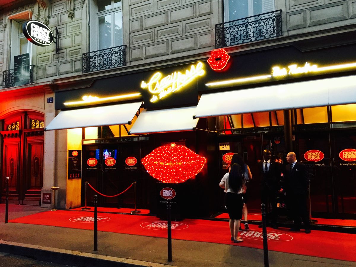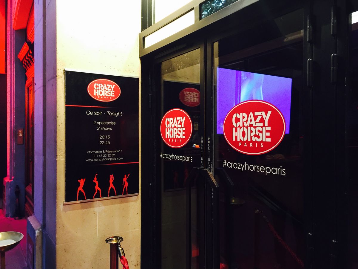 念願のクレイジーホースに到着!場所はGeorge V の突き当たり。直ぐそばにはプラザ・アテネもメトロの駅もあり、エッフェル塔まで見える好立地。