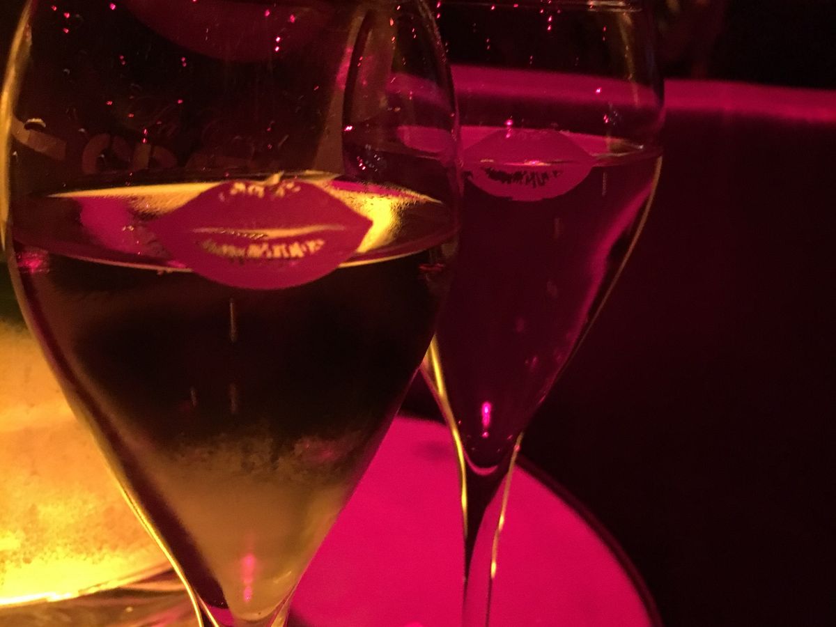 リップマーク表示のシャンパンを飲みながら、友人と弾む会話を楽しみました