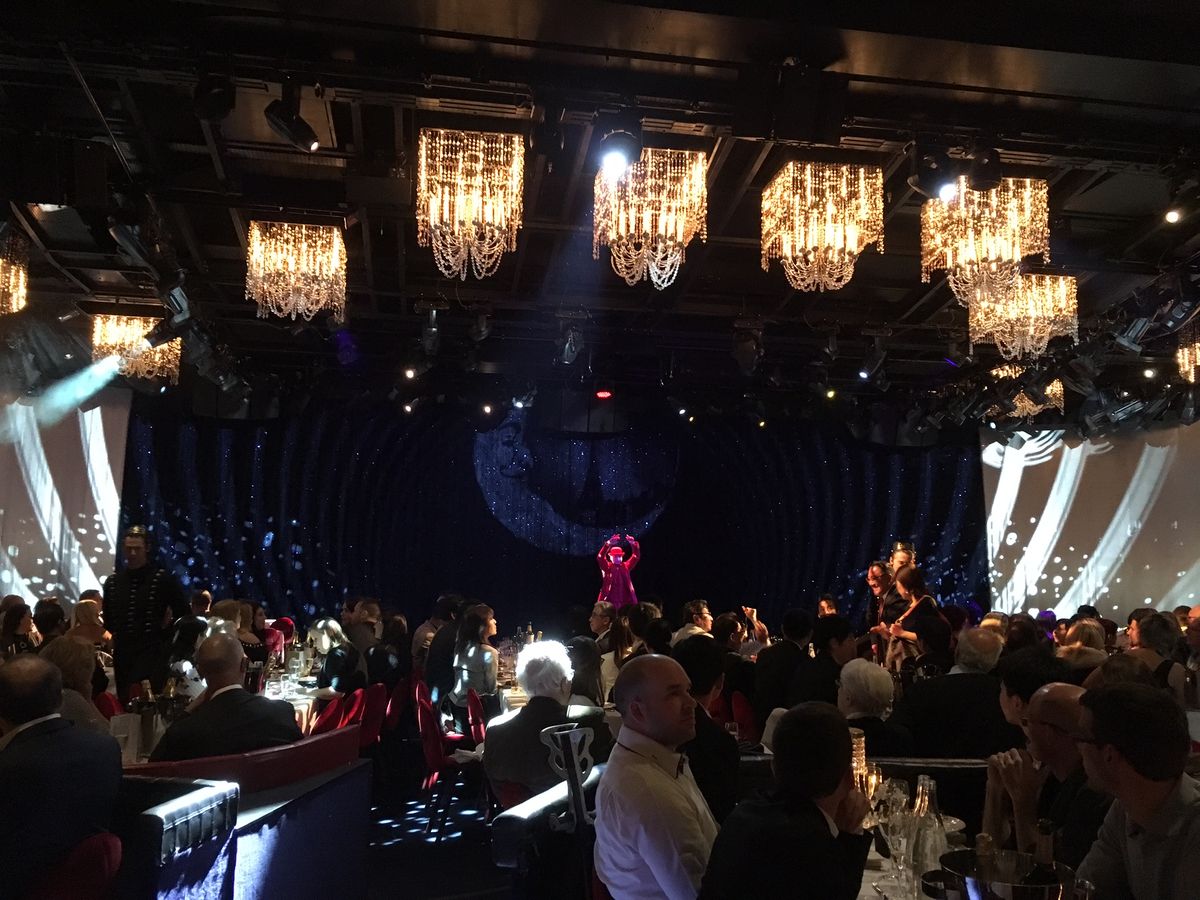 現地集合現地解散です。地下鉄乗っていきましたが駅徒歩2分で分かりやすいです。大きなクチビルの看板がありますし。シャンパン付でしたのでショーの前に飲みながら開演を待ちました。日本人の方多かったです。GWだったからでしょうか。最前列に男性のお一人様を配置されてました笑。一応ドレスアップしていったのですが。8割がた普通のお洋服でしたね。なによりステージの小ささにがっかりしました。もっと規模が大きいと思っていたので。ショー自体は綺麗ですし、楽しめましたが1度見れば十分な感じです。それよりお手洗いに1個だけ便座が2つある個室があったことに一番テンションが上がりました笑。何のためなんだろう。