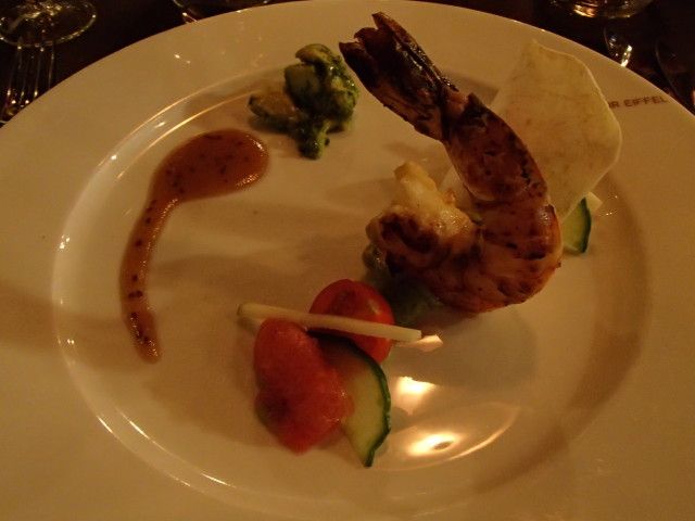エッフェル塔の2階にできた新しいレストランでのディナーです。期待していなかったのですが、意外にも美味しかった。それに店員さんもとっても気さくでよかったです。ディナー場所が少しわかりにくくて、エレベーターで2階まであがるのですが、レストランに行く全員が迷ってました…。その日レストランに行った人はみんなツアー客っぽくて、現地の人は行かないのかな?と思いました。ただ、この2階のレストランまでのエレベーターしかついていないので、それ以上上に行く場合は自分でチケットを購入して並ばなければならない様子。閑散期の夜でもエレベーターは並んでいました。