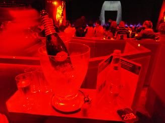 一人参加で、一番前の真ん中の席で見ました、シャンパンは二人で1本とかで、知らないイタリア人と乾杯しながら飲み、十分楽しめました。