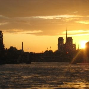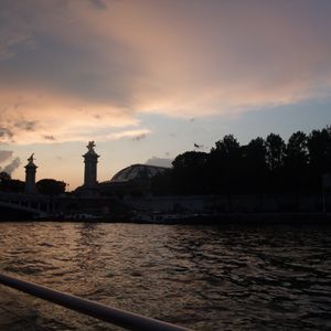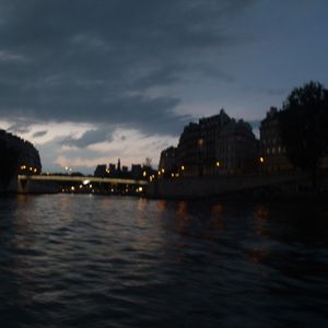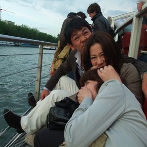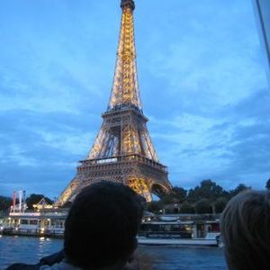 食事はさっさと切り上げ、ガイドの男性にデザート、コーヒーはとらないことを話してして(英語で話しましたが、今から思えば彼なら日本語でも十分通じたと思われます)、先に私たちは席を立ち、船着き場に行って並んで外側の席に陣取りました。夏場は日が暮れるのが遅いので夜景はいまいちですが、夕焼けがきれいです。夜10時から5分ぐらい点滅するエッフェル塔もきれいでした。