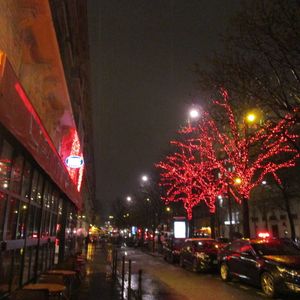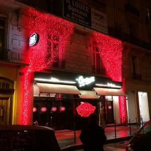 ダンサーの方々がとても美しかったです。GeorgeV(ジョルジュサンク)通りを進むと写真のように、道の木が赤くともっているところがあり、その前にCrazyHorseがあります。