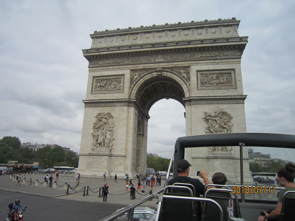 曇り空で、時折小雨もパラつく生憎の天気。2階オープンは寒く、1階からの車窓を楽しみました。パリの初日か2日目に予定に入れましょう。バスがわりに使わないのなら、1日券でいいと思います。また、トリコロールカラーなど3社あるみたいです。3社の比較はしていませんが、茶バスよりトリコロールカラーが良かったです。