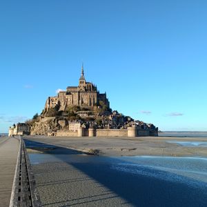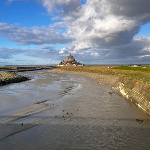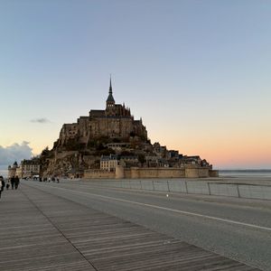 天候が頻繁に変わるので、到着時点で曇りや雨であれば先に修道院内を見学し、晴れたタイミングでモン・サン・ミシェルと対岸を繋ぐ橋から記念撮影すると良いかと思います。