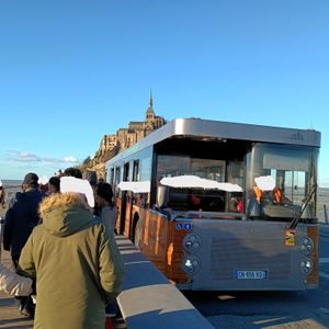バスの到着からモンサンミッシェルまで結構距離がありますが、歩いて行けなくもないです。私はバスで行きましたが、歩いて徐々に近づいてくるモンサンミッシェルもいいなーと思ったので、お好きな方で行くと良いです