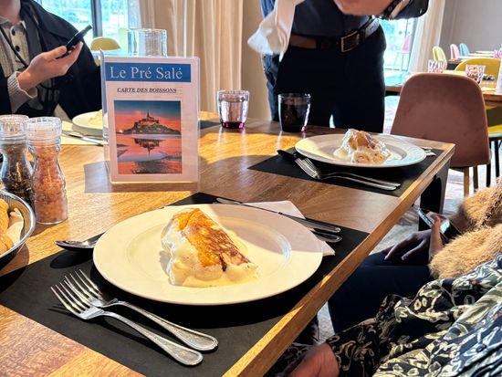 食事なしプランにして、島内でガレットやクレープを食べましたが、オムレツ元祖のお店もすいていたので、閑散期ならオムレツランチもありだと思います。