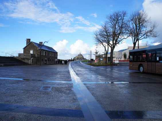 モンサンミッシェルの対岸までは、シャトルバスが出ており、これで移動します。島内は石畳・階段も多くて、歩くのに不安な方はやめたほうが無難だと思います。