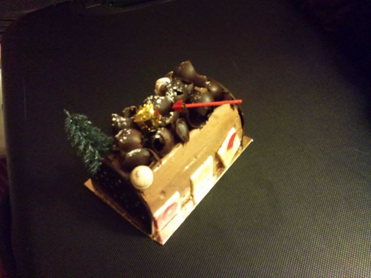 そして、帰りにポンレヴェックという小さな村に寄って買い物をすることができました。24日だったので現地のケーキ屋さんでブッシュドノエルを購入。クリスマスにフランスでこんなことができるなんてとても幸運でした。あと、カルバドスとチーズも購入し、夜は遅い時間にパリに到着でしたが、夕飯はホテルでクリスマス気分を味わうことができました。