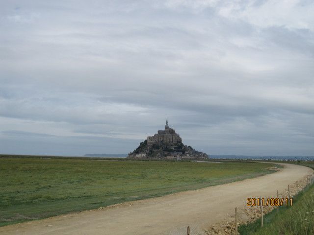 モンサンミッシェルで島内に着く前に、少し離れた所から写真が撮れてうれしかったです。全体がきれいに撮影できました(^▽^)