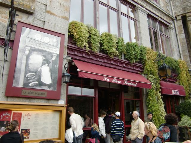 あとで気づきましたが翌日のヴェルサイユツアーと同じガイドさん♪親身なヤマギシさん。とてもよかったです~。さて、このツアーですが集合場所もわかりやすくて◎。朝早いですが途中サービスエリアにも寄ったりで心配なし。快晴でとても気持ちがよかったです。夏休みということでしたが帰り少し渋滞にあったくらいで特に問題なしです。田舎村はちいさすぎてあっというまに歩きまわれます。美味しいというパン屋さんでリンゴと生クリームをくるんだクレープをかったり。美味。モンサンに入る前に手前で全体像をとれる写真スポットにとまったり。モンサンではご飯はついてませんがバス内でランチチケットというものが配られたらしく(寝ていてのがした)、もらわずにランチはガレットとオレンジジュース、グリーンサラダという名のレタスのみのサラダをたべて11ユーロ。チケットでは20ユーロで小さなコースのようでしたが、それでムール貝のコースを選択した人からはあなたのほうが正解だったわよ的なことをいわれましたw ムール貝も名物みたいですね。完全にモンサンは観光地なのでお土産屋さんがいっぱい。はがきとか。ちなみにランチの店の人はあんまり英語が通じなかった…。英語メニューをみてどうにか会話。ガレットは店によっても暑さとかはちがうようですがおいしかったですよ。なかはガイドなしで回るツアーですが入口とかに日本語のパンフもあるので見ながらふらふら歩けますので問題なし。周りに各国のガイドさんとツアー者がいるのでちゃっかりたまに一緒に聴きながらホーと思ったりw 見回るのにも方向が→で示してあるので心配いりません。あ、ただ入口がすっごくほそーい(幅60せんち?)ところからはいったのでぽっちゃりさんはきびしいかもです!!! そういえばセントジェームスのお店があったのでもっと見ればよかったかもー。