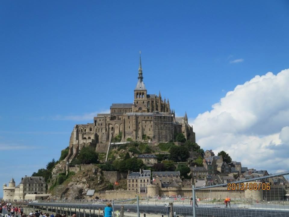 お天気にも恵まれ、とっても綺麗な空にモンサンミッシェルを見ることができ、大満足でした!ただ島内での時間が短く、修道院内を普通のペースで見ただけでも、最後のほうで時間がなくなり、集合場所まで急がなくてはなりませんでした☆次回は泊りで行きたいと思います!