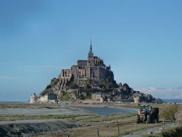 2度目のモンサンミッシェル体験です。当日、天気が悪く曇り空。ガイドさんも今日のモンサンミッシェルの天気は曇り時々雨、晴と言ってました。雨だけは降らないでほしいと願って出発です。途中雨も降って来て不安な思いでいましたが目的地に到着すると雲間から青空が見え始め、バスを降りて連絡のシャトルバスに乗り込む頃には青空の中のモンサンミッシェルを見ることが出来るようになりました。2度目ですがやはりこの抜けるような青空の中のモンサンミッシェルが一番です。この季節余り観光客も多くなくゆっくり見学できました。ただ、モンサンミッシェルへの道が工事中でこれから観光客が増えて来るとシャトルバスが大変混むような気がします。バスの集合時間には余裕を持って引き返した方が良いでしょう。