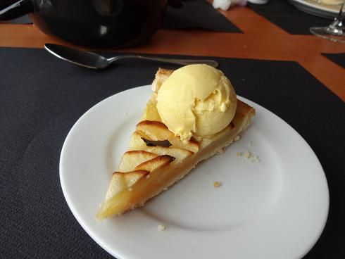 モンサンミシェルは予想通り。ただ、行かれるならオムレツ昼食はいらないかも・・昼食会場は寺院が見える正面に位置しており、場所的には最高でキレイでした。しかし、団体受け入れしているため、オムレツは表面だけ火が通ったような感じで、後は泡を食べているような。。。メインは鮭。まずまずでした。サービスは遅いので、デザートのアップルタルトは諦めて観光に行きました。