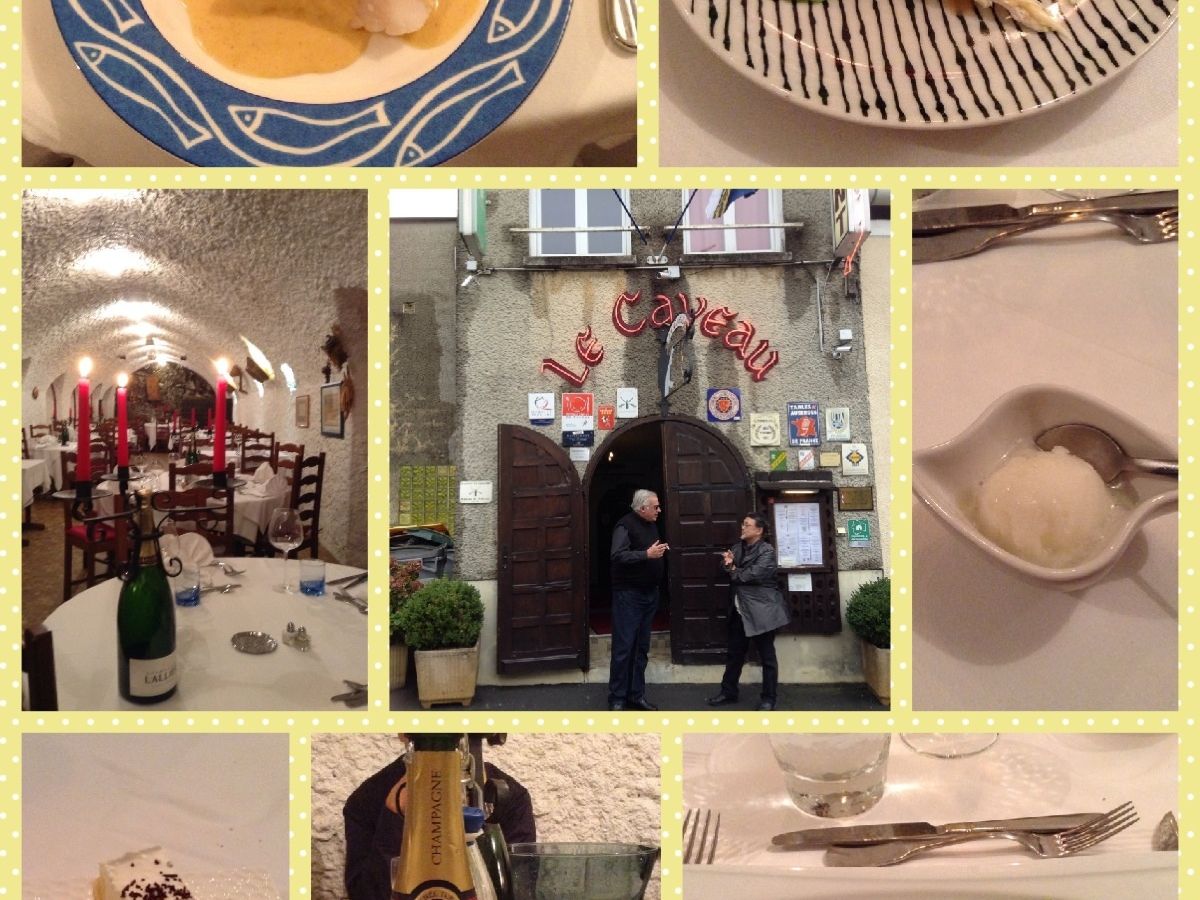 11:45シャンパーニュ地方の美しい村(オーヴィリエール)/ドン・ペリニヨンの名がつく教会へ。教会はこじんまりとしており、地元の人が普通に通っている教会。ここのトイレはものすごくきれいと同行者が騒いでいたが、未確認。昼食は期待以上に良いレストランで食前酒、前菜とおいしい。途中シャンパンのシャーベットも口直しに出てきた。メインも、デザートもおいしかった。地元でも有名なお店らしかった。ワインもよかった。時間も十分すぎるほど。
