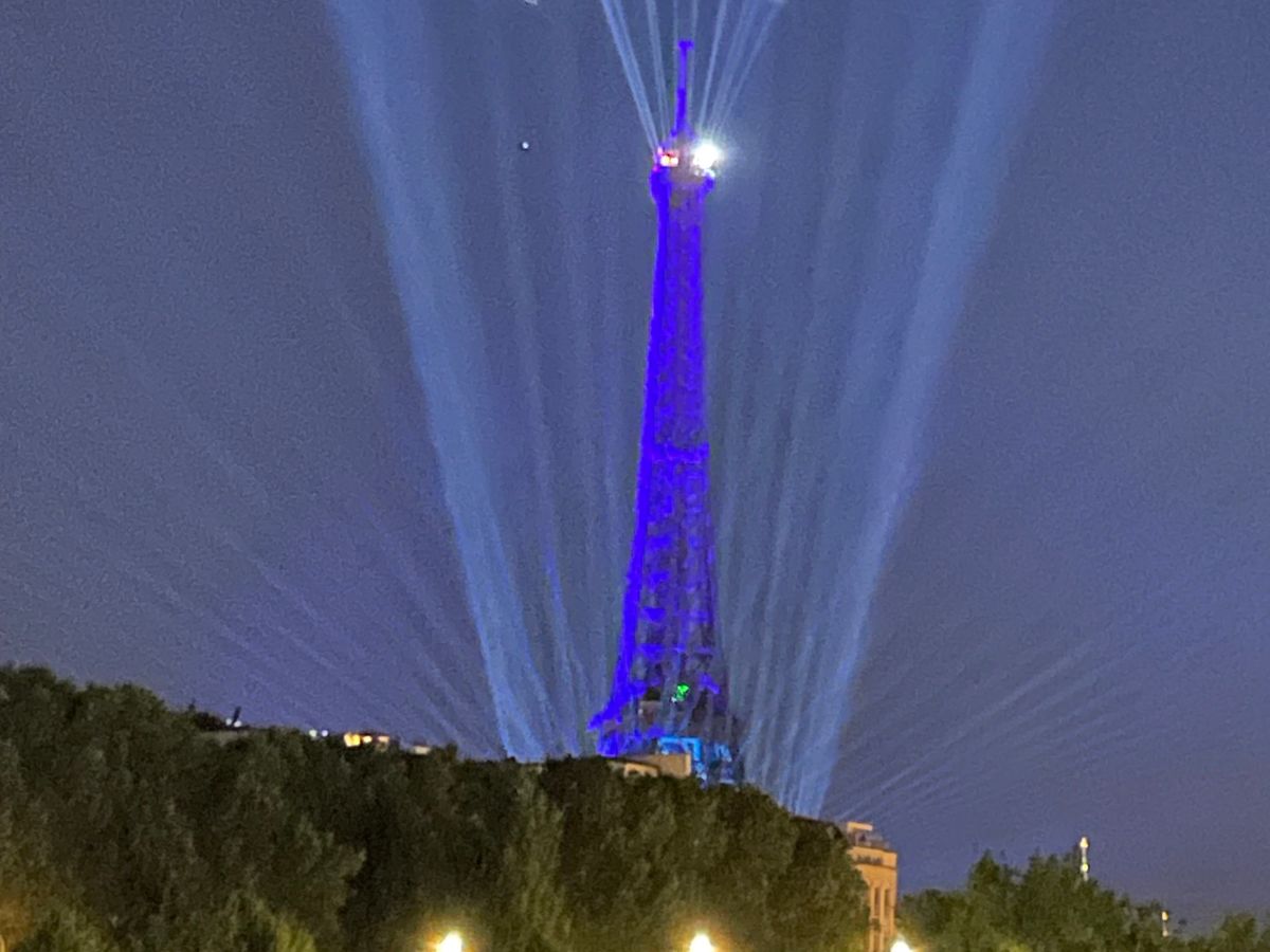 綺麗にライトアップされたエッフェル塔が目の前に見えました。特に22時ピッタリにエッフェル塔の前を船が通航するので、点滅してキラキラしたエッフェル塔が間近に見えてとても感動しました!