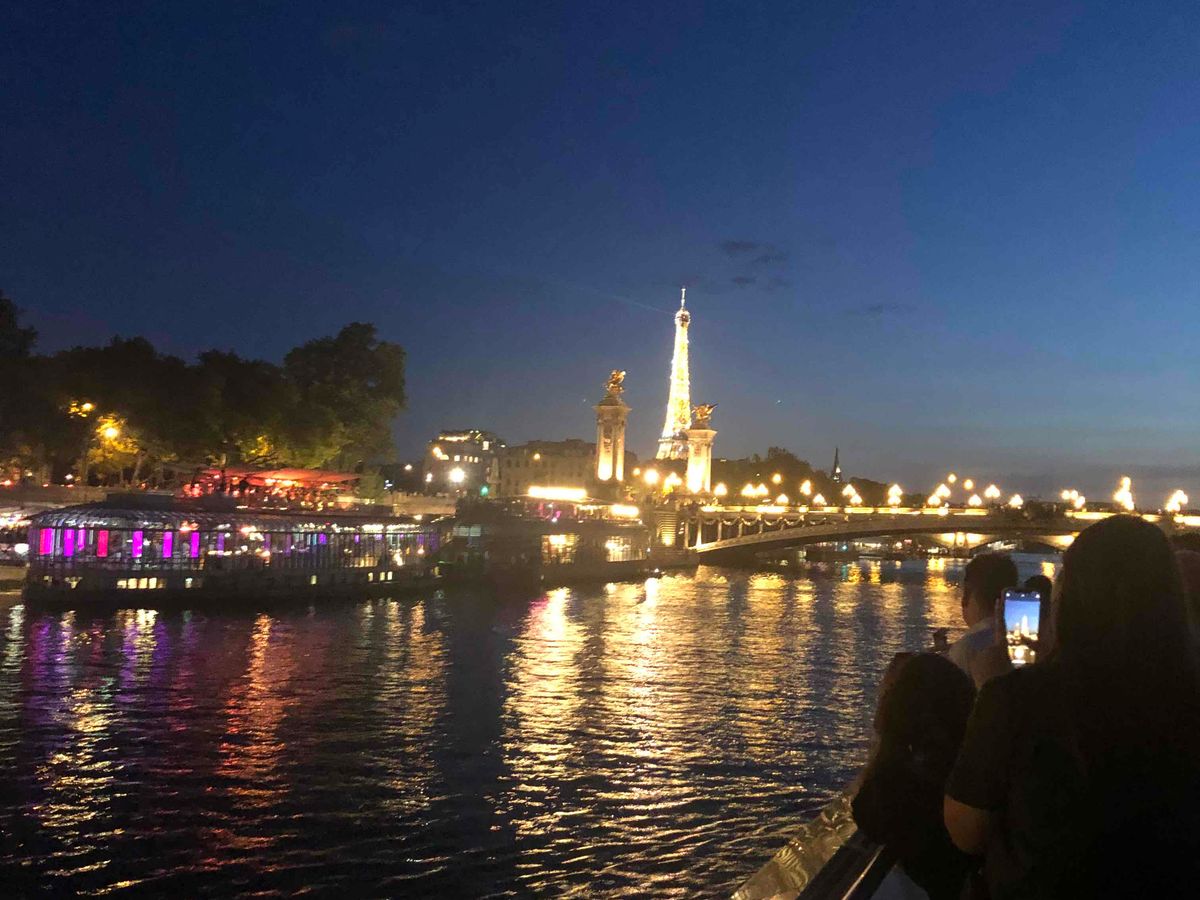 夜景を楽しみたかったので、21:15発にして大正解。セーヌ川沿いを、夕景から夜景まで堪能し、最後はエッフェル塔シャンパンフラッシュもバッチリ見ることができました。お値段は高くなりますが、窓際席にして良かったです。お食事のシャンパンも、グラスではなくボトルでした!ディナーは、たっぷりな量ですので、ぜひお腹を空かせて行ってください。日本人は私たちだけでしたが、とても親切に対応してくださいました。