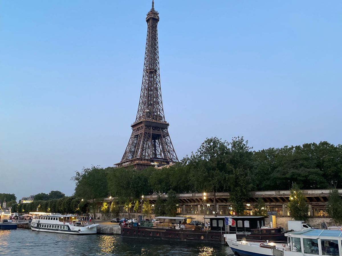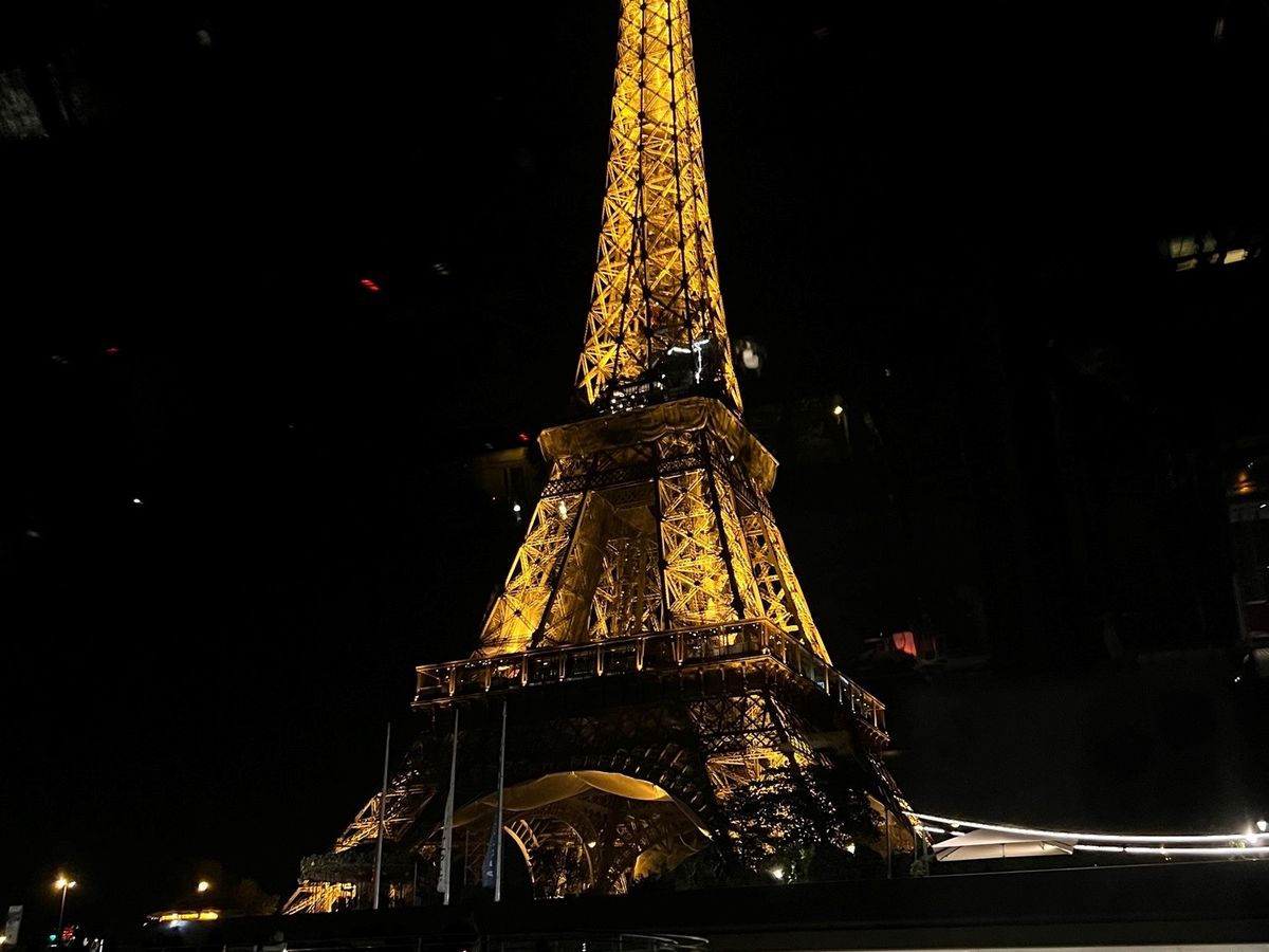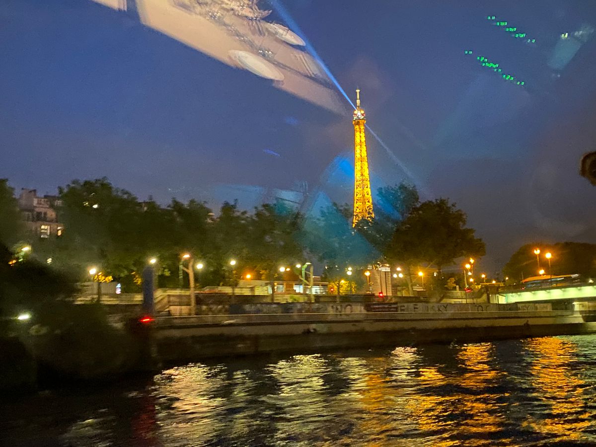 日没が22時近いため、21:15発のクルーズを選択。夕暮れ時に出港し、エッフェル塔の前を通過時にはちょうどシャンパンフラッシュが始まりとてもきれいでした。