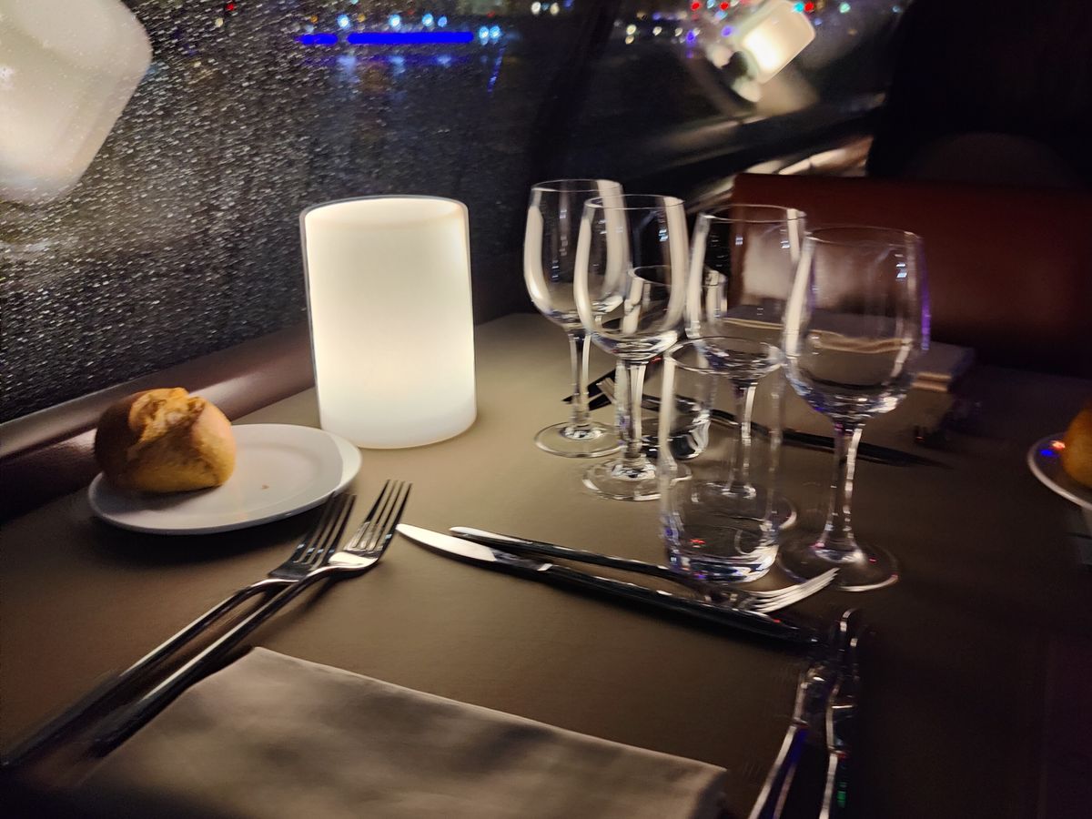 確かに全て窓際のテーブルに案内され、前菜、メインコース、デザートと選べるフレンチのフルコースが提供され、窓の外はライトアップされたパリの夜景が過ぎ去っていくので、観光のコンテンツとすると、充実感はあります。