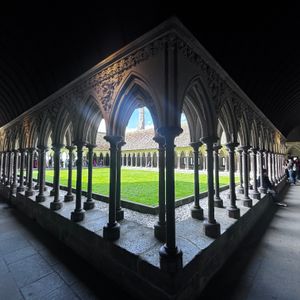 モン・サン・ミシェルに着いたあと、島に渡る前にレストランでシードルとランチをとってしまったため、時間がタイトになってしまい、ノンストップで坂道登って休みなしで修道院に入場し、まだ登りの階段がダラダラ続くことに、気分が萎えました。修道院の前にアルコールは入れない方が良いですね。お天気に恵まれ、空と干潟の浜と海と、とても綺麗に見えました。ガイドの方のバス内でのお話も面白く、朝の凱旋門、夜のライトアップしたエッフェル塔もバスから見られて嬉しかったです。ガイドの方、運転手さん、お世話になりました。