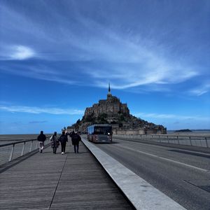 モン・サン=ミッシェルを実際に訪れてまず感じたのは、「本当にこんな場所が現実にあるんだ」という不思議な感覚だった。遠くから見ると海の上にぽつんと浮かんでいるように見えて、まるで映画や物語の世界に入り込んだような気分になる。近づくにつれてその存在感はどんどん大きくなり、ただの観光地ではなく、長い歴史を背負った特別な場所だと実感した。
