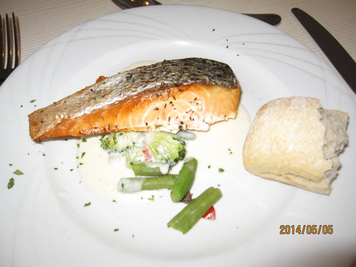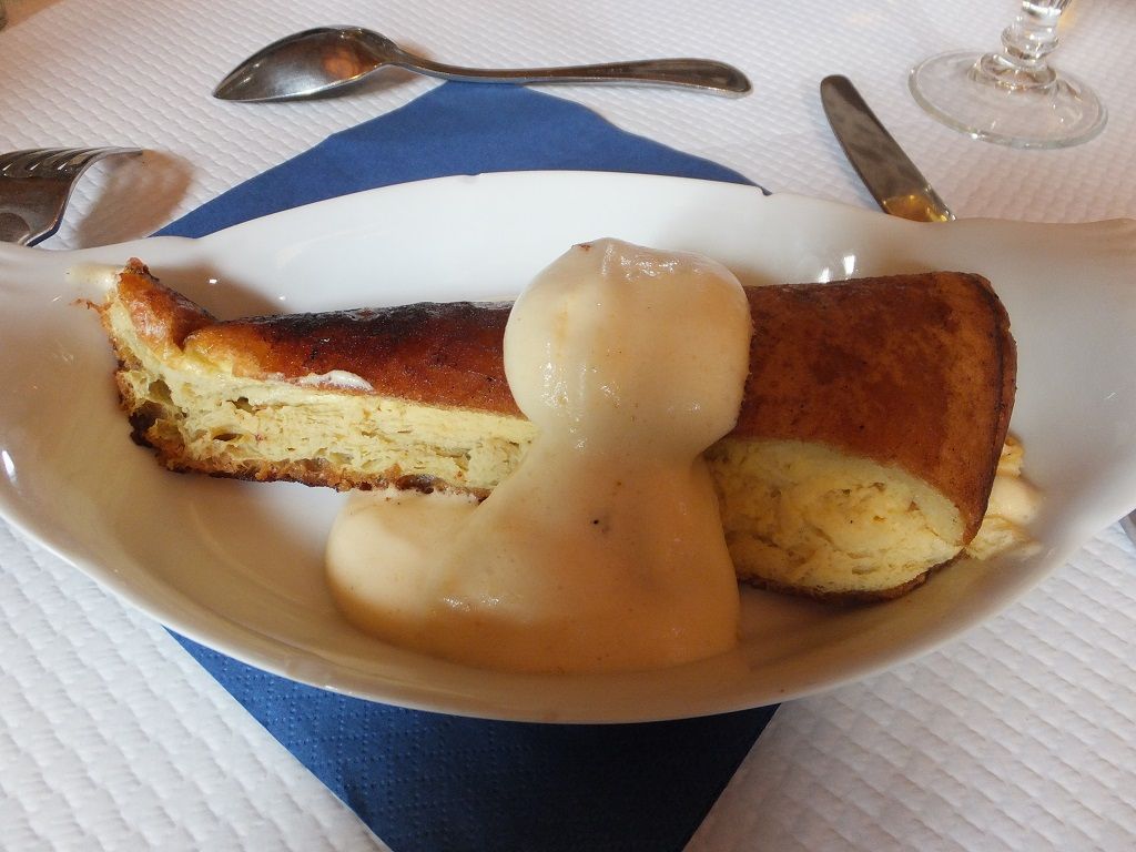 昼食は期待しすぎない方が良いでしょう。少し物足りなさを感じるかもしれません。オムレツは前菜で、淡泊すぎる感じです。ナンセンスかもしれませんが、日本式にケチャップやソースがあればよりおいしくなると感じました。メインのサーモンも素材は悪くないようなので、もう少し味付けがしっかりした方が美味しいのではと思いました。価格を上げてもいいので、日本人からみて美味しい料理を提供してほしいと思いました。シードルやジュースは、飲み放題の方が良いと思います。