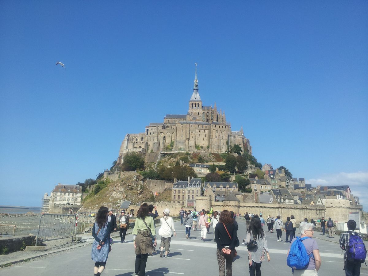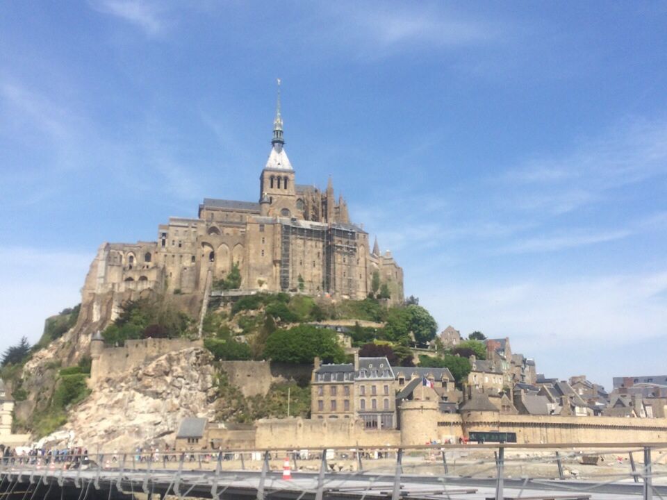 モンサンミッシェルは遠目で見た感じが、今までのガイドブックでみた景色と一緒でとても感動しました。ただ、行った時期が悪かったかもです。5/1、5/2はメーデとその次の日はストの日で修道院は休みとの連絡があり、私たちのいった4/30はほんとうに大混雑の日でした。