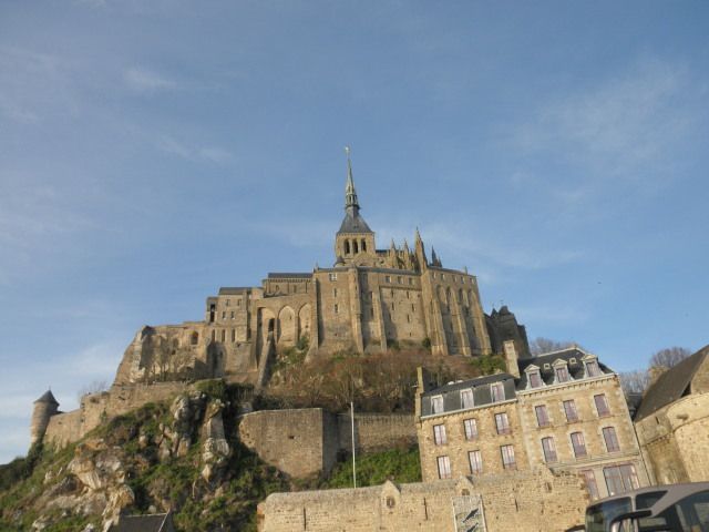 マイバスツアーでモンサンミシェルへ行ってきました。途中の曇天がうそのように晴れ渡ったモンサンミシェル。遠くにかすむその姿は感動です。近づくにつれ大きくはっきりする島の修道院、はるばるパリからやって来たかいがありました。ガイドさんのくわしい解説と荘厳な内部に心は遥か昔へタイムスリップ、すこし中世が身近に思えました。素晴らしい一日でした。最後に苦言を少し。マイバスだけで3台のバスが同時に出発したため途中のトイレが大パニック。立ち寄るサービスエリアを調整できなかったのかと感じました。
