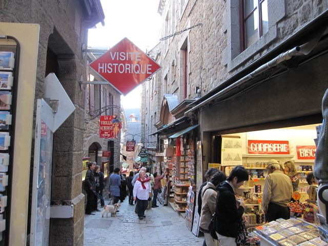 モンサンミッシェルは、他の方の書き込みにもあるように、日本でいう清水寺のような感じで、お土産屋さんが並んでいました。道は狭く、人で密集します。
