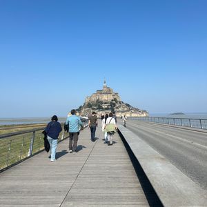 早朝から1日掛りのツアーでした。モンサンミッシェルはとても良い天気で、建物から見える干潟は絶景でした。今回は1人フランス旅だったので、このツアーで久しぶりに日本語を聞ける喋れるというのも、異国で何処となく緊張していたのか、ほっとできる機会でした。添乗員さんの丁度良いタイミングでの気の利いたお話、其々のお客様に配慮したお声掛けも心地良かったです。現地近くになると、モンサンミッシェルの周り方など簡潔に説明頂けます。往復路にトイレ休憩を設定されてますし、安心出来るツアーなのでお勧めです。