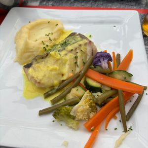 メニューは、オムレツ、魚料理、デザートの3品でした。魚料理は量が多くお腹がいっぱいになります。お水は無料です。