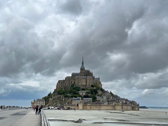 7:20パリ出発、21:00パリ到着の長時間ツアー。運転手は一人なのにガイドさんは一人なのにその仕事が最高でした。往路ではモンサンミッシェルが見えるわずかなタイミングで案内。兎に角、案内や確認が的確でわかりやすい。復路では、移動中に食事の予約やカード決済を手配。それぞれのお客さんに個別にフランス旅行の相談にも対応。本当に素晴らしかった。モンサンミッシェルは、20年以上振り2回目でしたが、周囲の水が少なくなっていて、また天気も悪く残念でした。しかしながら、日が差すと、相変わらずの威光を放つ荘厳な佇まい。これが、また最高でした。