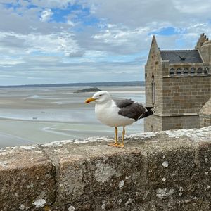 島までは無料の電気バスで移動、終点から入り口までは少し歩きます。事前にみゅうさんの可愛いイラストの地図はいただいていたのですが、他の観光客の流れにつられてしまい、入り口を間違えてしまいました。バカンスシーズン、暑い中、あらゆる国から来ていた他の観光客と行列に並び、もしかしたら観光する時間が無くなるのでは?と心配しましたが、建物に入ったらさほど混んでいなくて、人慣れしているカモメにも癒され、戻る時には有名なオムレツ屋、お土産物屋が並ぶ通りで買い物をすることもできました。トイレは2ヶ所しかなく、それぞれ混んでいるので、食事をしたホテルで入って行った方が良いです。島から戻る時、電気バス待ちの行列がかなり長かったので散歩がてら歩いて戻りました。次に行く時があるなら?対岸のホテルに泊まり、早朝と夕方のモン・サン・ミシェルを観たいです。
