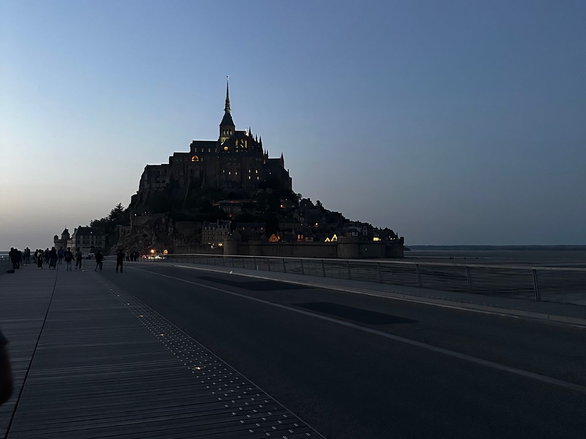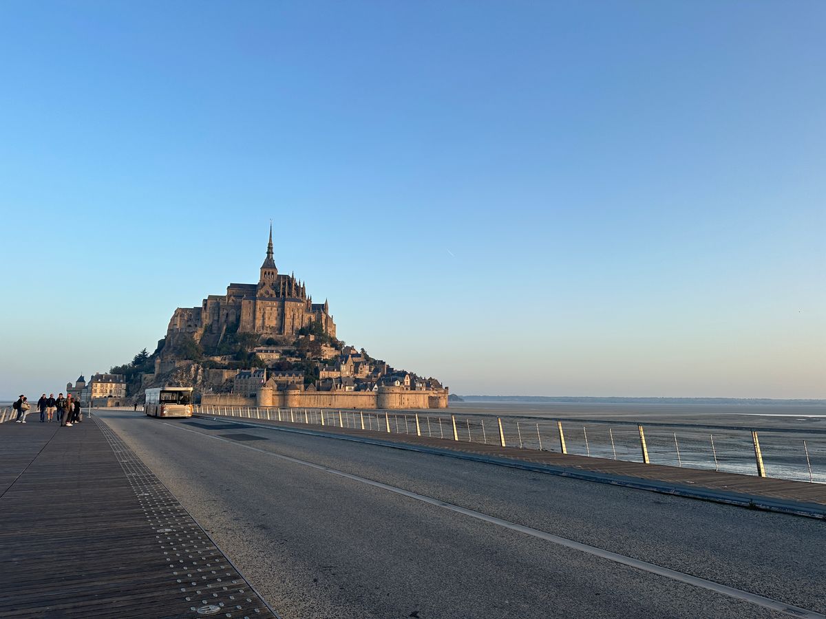 モンサンミッシェルとても綺麗で想像を遥かに超えた!ガイドさんの英語はとても聞き取りやすくわかりやすく良かった!トイレ休憩は行きと帰りに1回ずつあったが、帰りのトイレ休憩が半分の道のりを過ぎてもなかなか休憩はなく、ちょっと危なかった。(バス内にトイレがあったが使用不可)