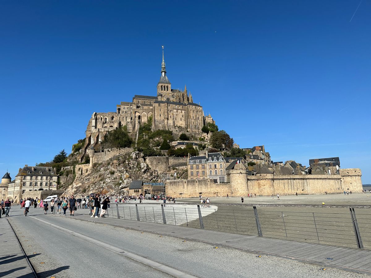 モン・サン・ミシェル自体は申し分なく、雨の中でしたが満喫できました。カバンのサイズは対角線40cmまでとありましたが、オーバーしている人もいたので多分大丈夫です。また、パスポートも必要と見た気がしたのですが、特に提示は求められませんでした。山登りのように階段を登るので体調は万全に&歩きやすいスニーカーで参加してください。よく映像で見る、海(沼?)を歩くと足が泥まみれになるのでおすすめはされていませんでした。バスも汚れますし、無料のシャトルバスか徒歩で向かうのが良いでしょう。